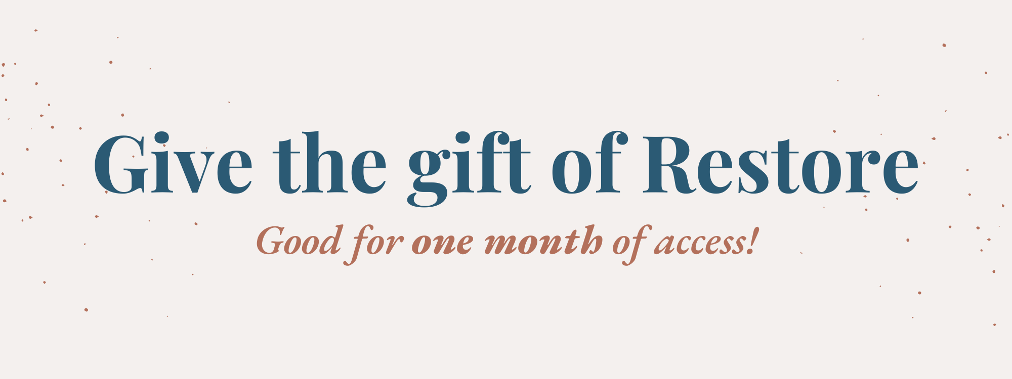 After completing your one-time gift purchase, a unique coupon code — good for one free month of Restore — will be delivered to your inbox. (Your card will not be billed again.)
